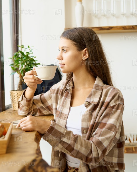 Чашка чая или кофе. Женщина пьет горячий напиток и наслаждается утром