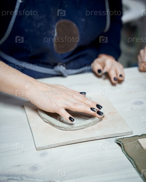 Женщина делает керамическую посуду в мастерской. Концепция для женщины-фрилансера, бизнеса. Ручная работа