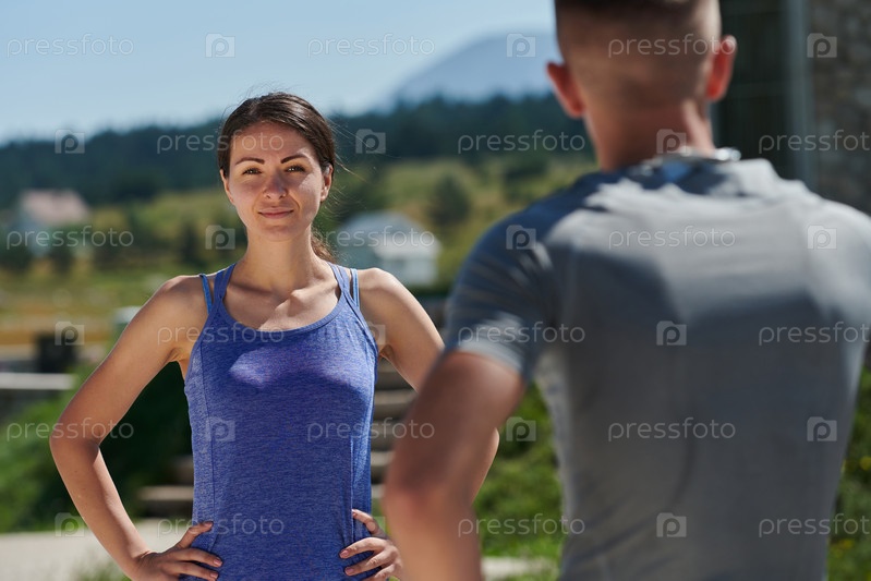 Релаксация после пробежки: романтическая пара отдыхает после интенсивной тренировки