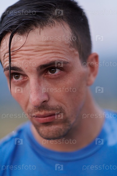 Отдых после пробежки: потный спортсмен отдыхает после интенсивного ежедневного бега