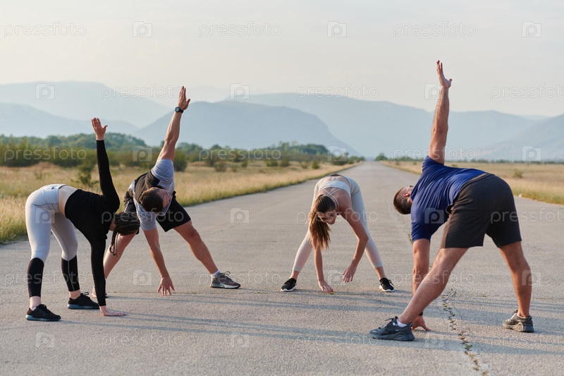 Разнообразная группа спортсменов вместе готовится к забегу