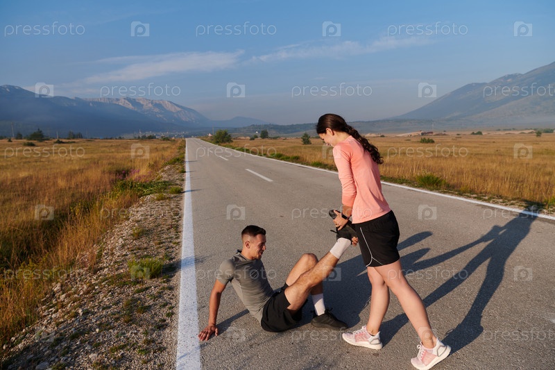 Утренняя разминка: романтическая пара готовится к утренней пробежке