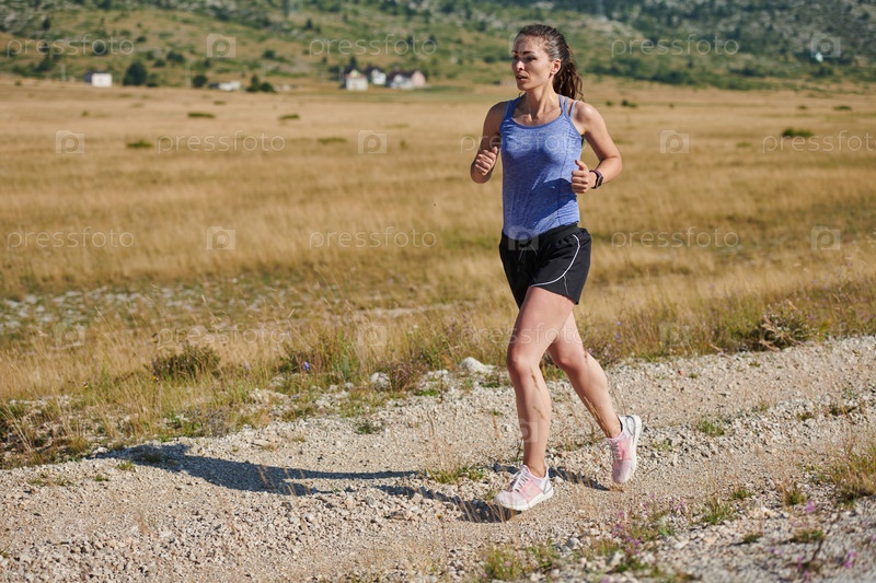 Решительная женщина-спортсменка тренируется для достижения успеха под утренним солнцем