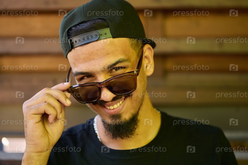 Крупный план портрета улыбающегося суданского подростка с широкой улыбкой, подбородком и кепкой