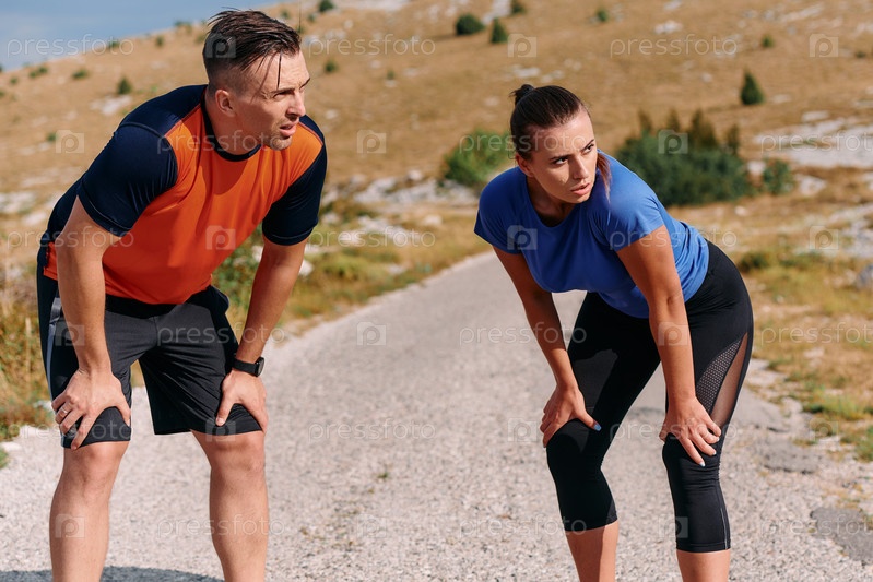 Пара отдыхает после интенсивной утренней пробежки