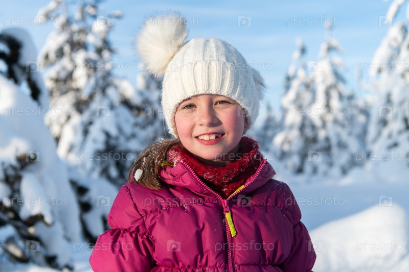 Портрет красивой девушки, наслаждающейся солнечным светом среди снежных вершин