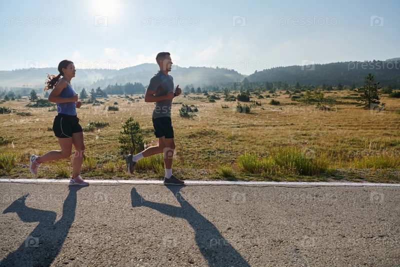 Вдохновленные красотой природы, пара совершает утреннюю пробежку, придавая бодрость телу и духу