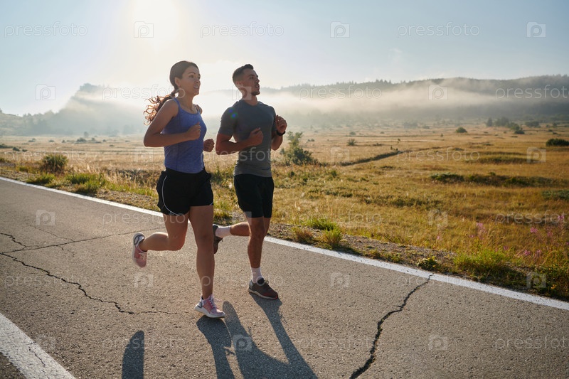 Вдохновленные красотой природы, пара совершает утреннюю пробежку, придавая бодрость телу и духу
