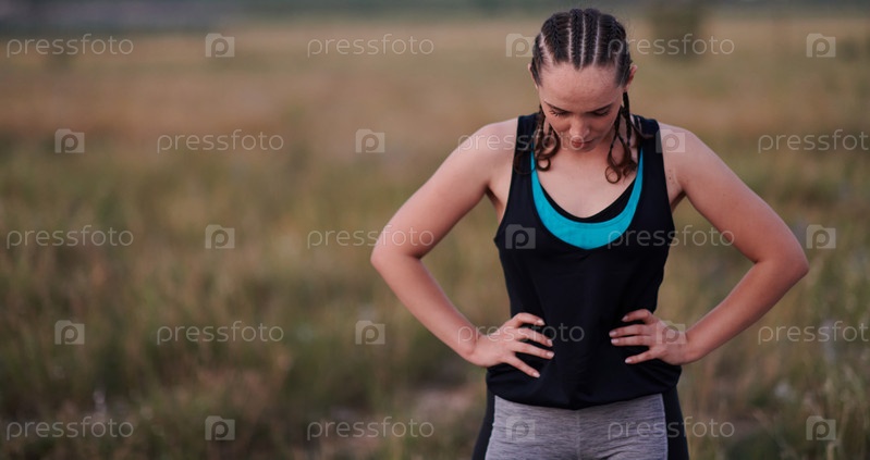 Крупный план портрета решительного спортсмена, отдыхающего после интенсивной тренировки