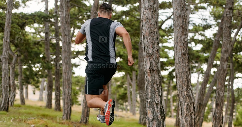 Решительный человек преодолевает лесные препятствия с упорством и скоростью