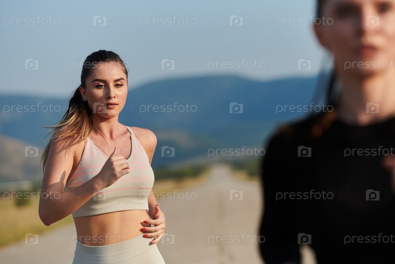 Решительная женщина-спортсменка тренируется для достижения успеха под утренним солнцем