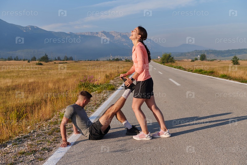Утренняя разминка: романтическая пара готовится к утренней пробежке