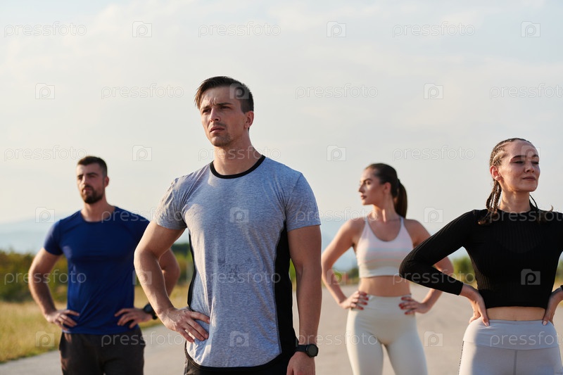 Разнообразная спортивная разминка: группа готовится к интенсивным беговым испытаниям