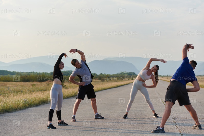 Разнообразная группа спортсменов вместе готовится к забегу