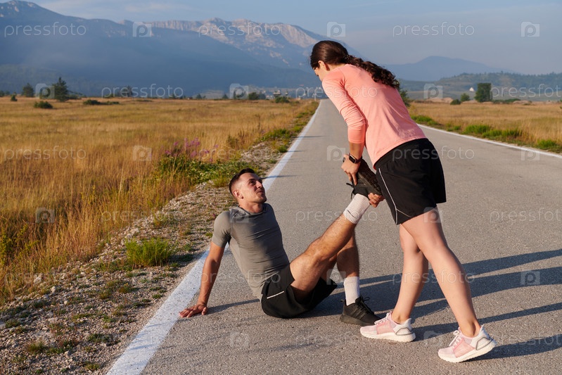 Утренняя разминка: романтическая пара готовится к утренней пробежке