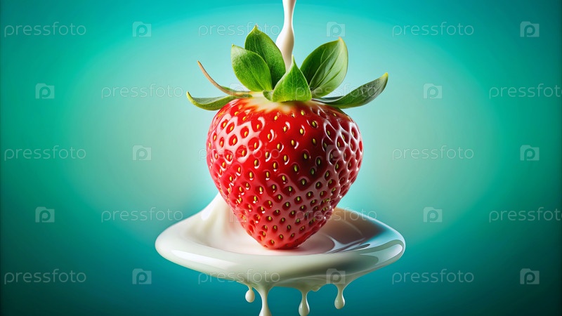 Клубника со сливками на зеленом фоне