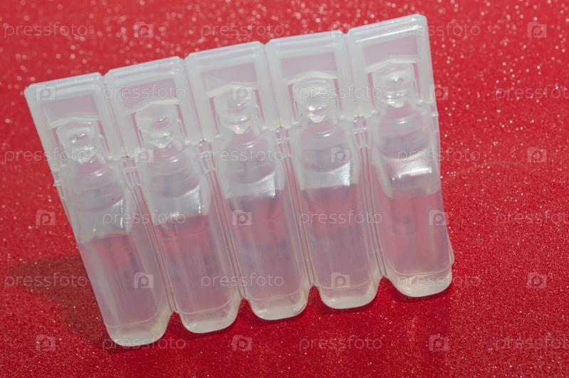 Пластиковая упаковка с инъекцией противовоспалительной на красном фоне