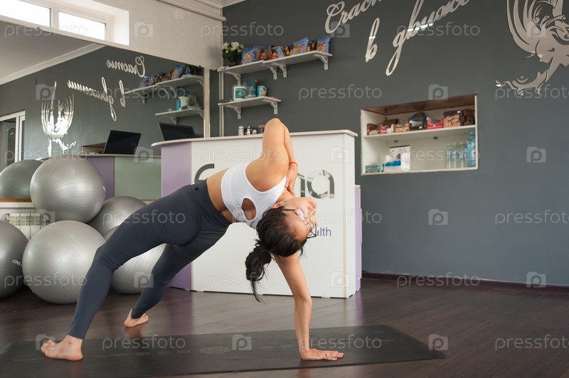 Азиатская девушка демонстрирует упражнения йоги и акробатики