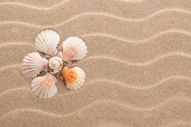 Концептуальная маргаритка из ракушек, лежащих на дюнах