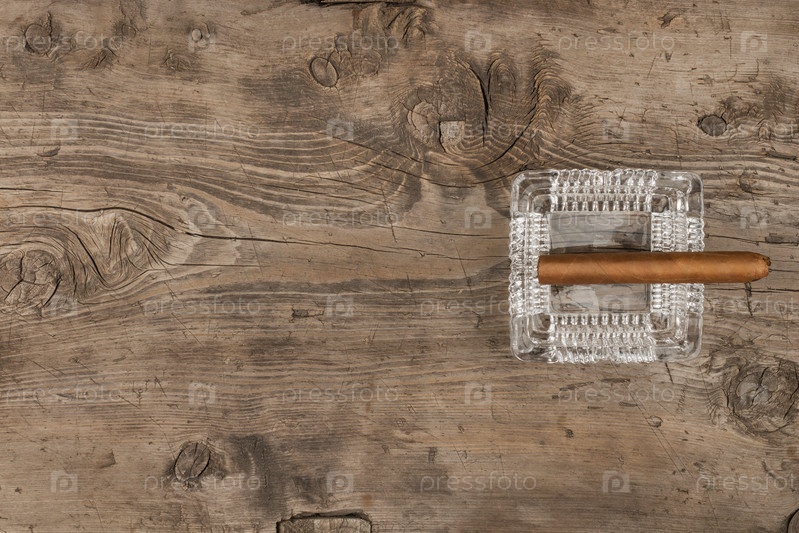 Сигара в пепельнице на деревянной поверхности, с местом для текста
