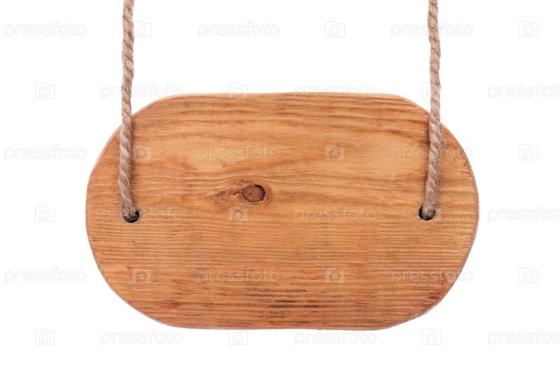 Винтажная деревянная вывеска из светлого дерева, висящая на веревках. изолированный
