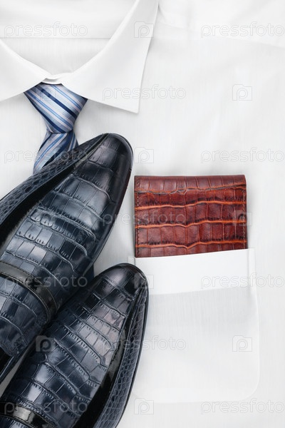 Мужские классические аксессуары: рубашка, галстук, туфли, как фон