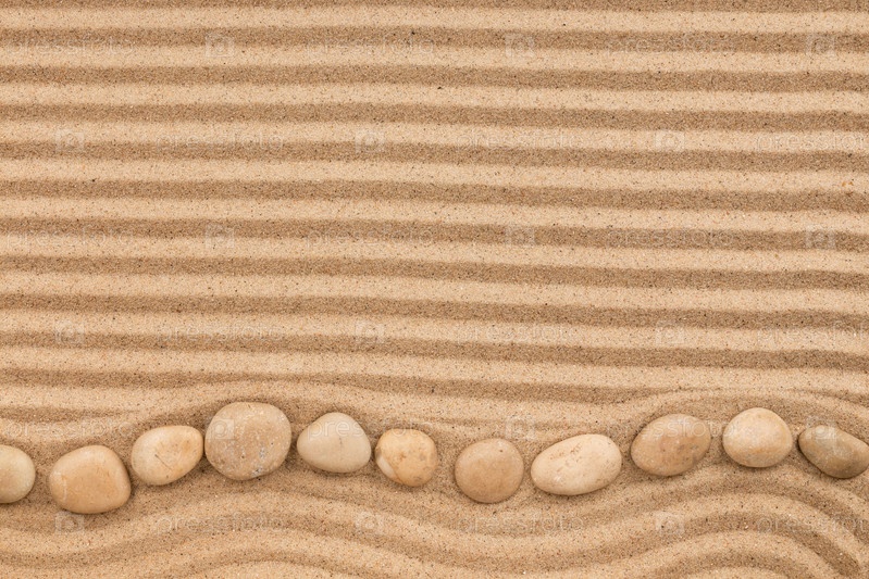 Рамка из белых камней, лежащих зигзагом, на волнистом песке