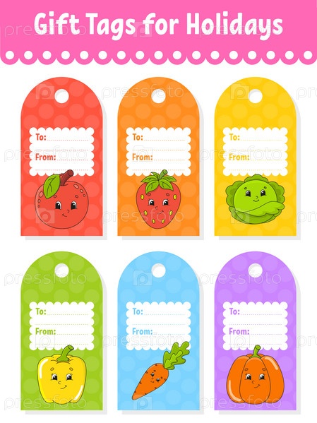 Подарочные бирки. Для праздников с местом для вашего текста. Яркие наклейки. Прямоугольная этикетка. Векторная иллюстрация