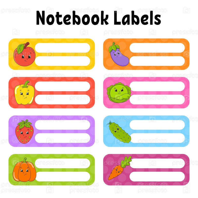 Школьные этикетки для книг и тетрадей. Яркие наклейки. Прямоугольная этикетка. Векторная иллюстрация