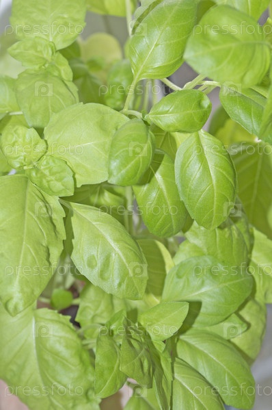 Зеленая зелень базилика. Пряные травы