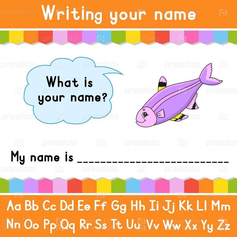 Написание своего имени. Лист образовательной деятельности для детей и малышей. Игра для детей. Векторная иллюстрация