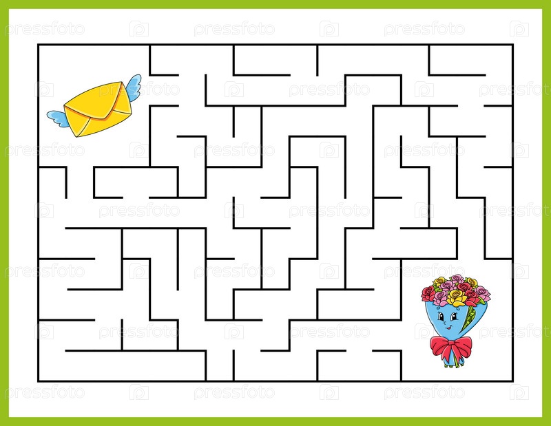 Прямоугольный лабиринт. Игра для детей. Забавный лабиринт. Рабочий лист по развитию образования. Страница активности. Головоломка для детей. мультяшный стиль. Загадка для дошкольников. Логическая загадка. Векторная иллюстрация