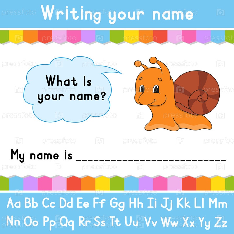 Написание своего имени. Лист образовательной деятельности для детей и малышей. Игра для детей. Векторная иллюстрация