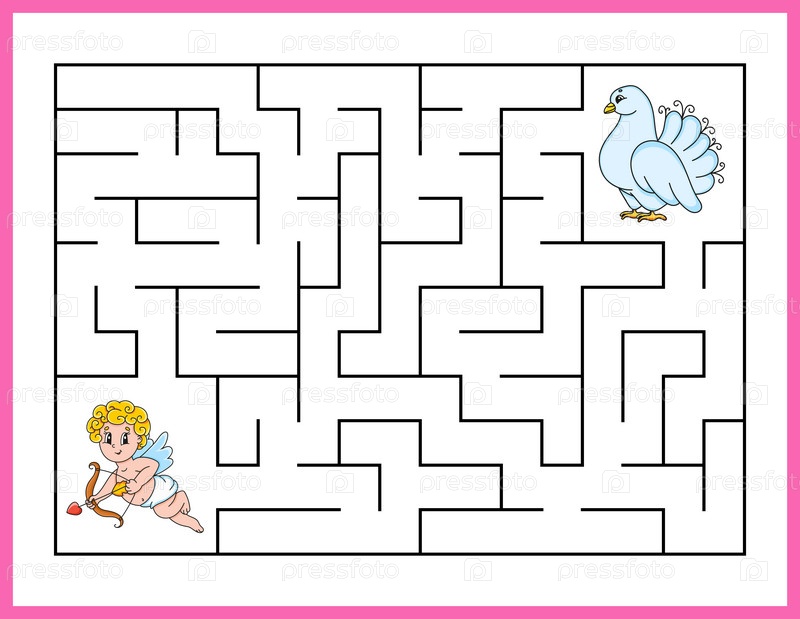 Прямоугольный лабиринт. Игра для детей. Забавный лабиринт. Рабочий лист по развитию образования. Страница активности. Головоломка для детей. мультяшный стиль. Загадка для дошкольников. Логическая загадка. Векторная иллюстрация