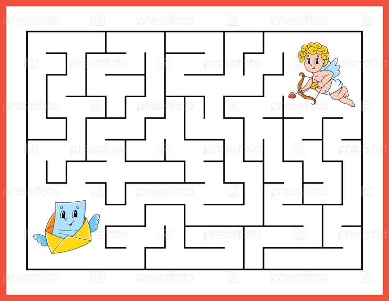 Прямоугольный лабиринт. Игра для детей. Забавный лабиринт. Рабочий лист по развитию образования. Страница активности. Головоломка для детей. мультяшный стиль. Загадка для дошкольников. Логическая загадка. Векторная иллюстрация