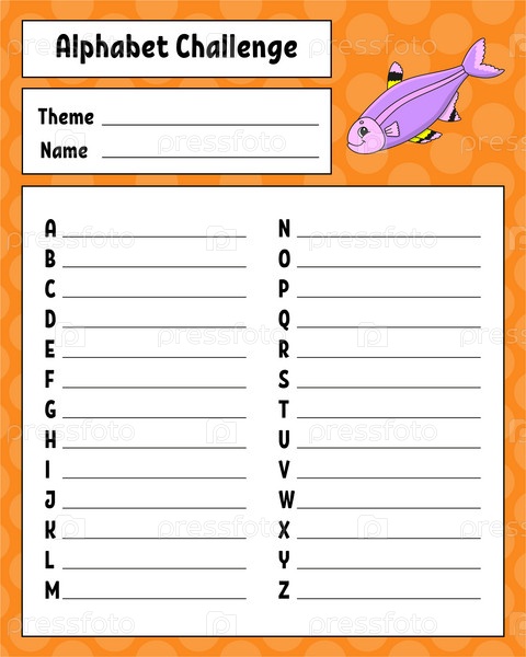 Алфавитный вызов. Лист образовательной деятельности для детей и малышей. Игра для детей. Векторная иллюстрация