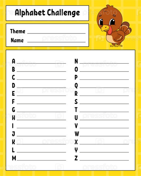 Алфавитный вызов. Лист образовательной деятельности для детей и малышей. Игра для детей. Векторная иллюстрация