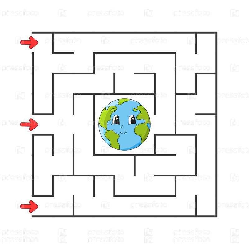Квадратный лабиринт. Игра для детей. Головоломка для детей. мультипликационный персонаж. Загадка лабиринта. Найдите правильный путь. Развитие логического и пространственного мышления. Векторная иллюстрация