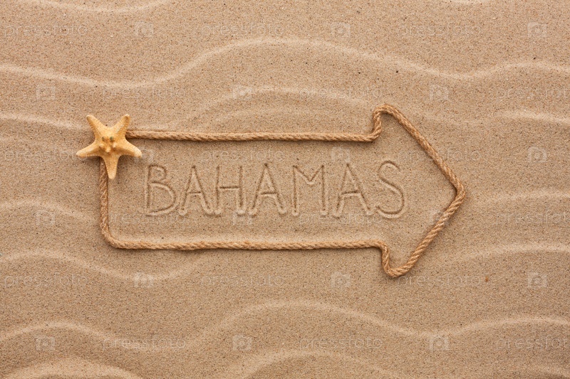 Стрела из веревки и морской звезды со словом Багамы на песке