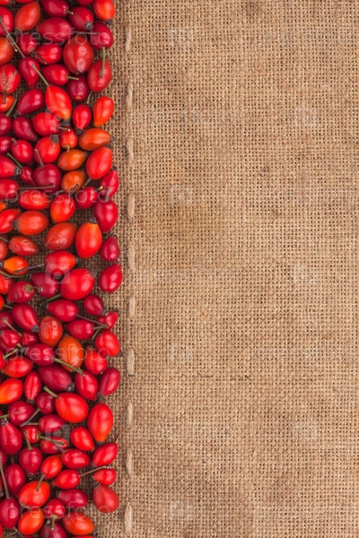 Шиповник лежит на мешковине