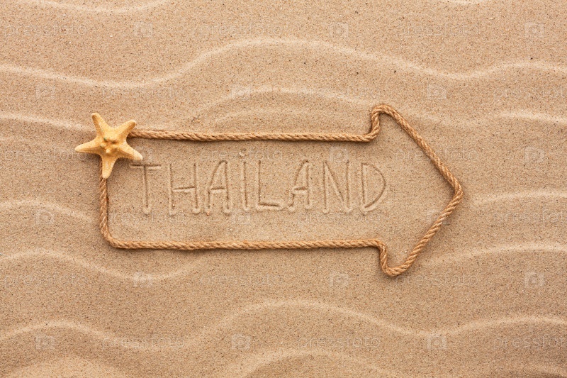 Стрела из веревки и морских ракушек со словом Таиланд на песке