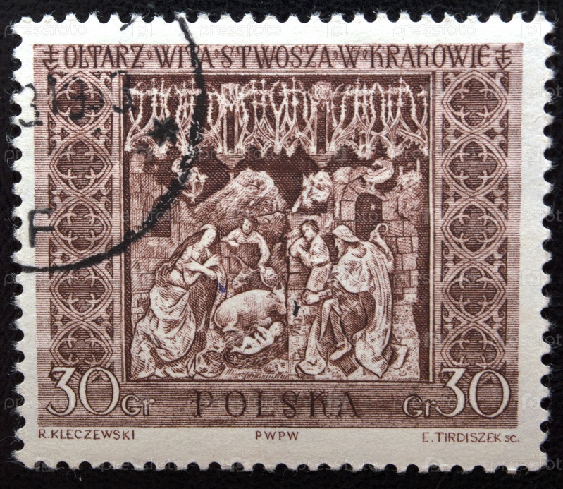 Почтовая марка с гашением Польша 1960 год. Рождество. Алтарь Вита Ствоша