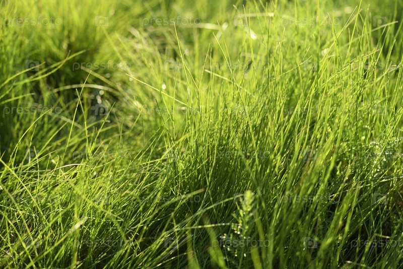 Зеленая весенняя трава крупным планом. Зеленые травинки в солнечном свете в саду