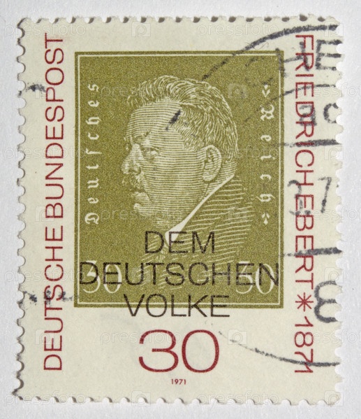 Почтовая марка Германии 1971 года. Фридрих Эберт (1871-1925) рейхсканцлер Германии, президент Веймарской республики