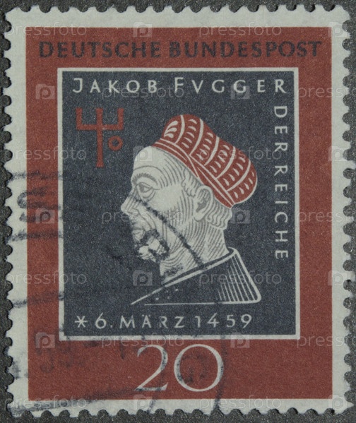 Почтовая марка Германии 1959 года. 500 лет со дня рождения Якоба Фуггера