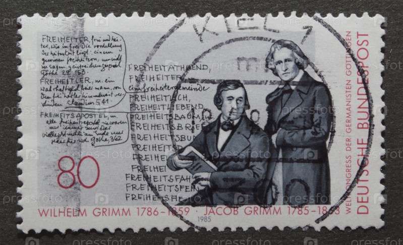 Почтовая марка ФРГ 1985 года. Двухсотлетие со дня рождения братьев Гримм
