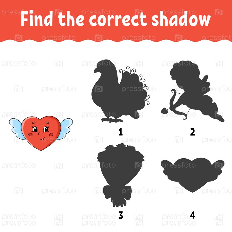 Найдите правильную тень. Рабочий лист по развитию образования. Комбинационная игра для детей. Страница активности. Головоломка для детей. мультипликационный персонаж. Векторная иллюстрация