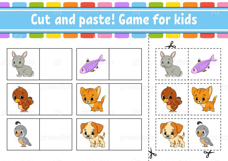 Вырезать и вставить. Игра для детей. Лист образовательной деятельности для детей и малышей. Игра для детей. Векторная иллюстрация