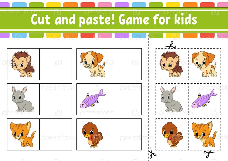 Вырезать и вставить. Игра для детей. Лист образовательной деятельности для детей и малышей. Игра для детей. Векторная иллюстрация