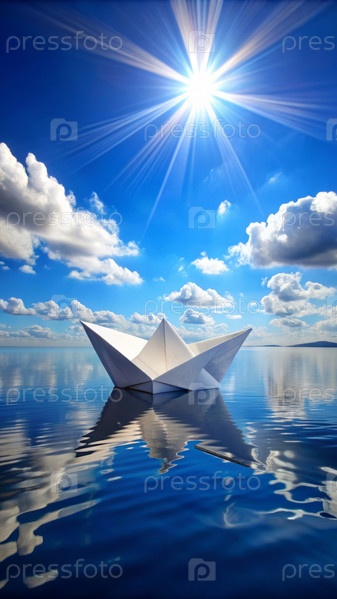 Бумажный кораблик на поверхности воды